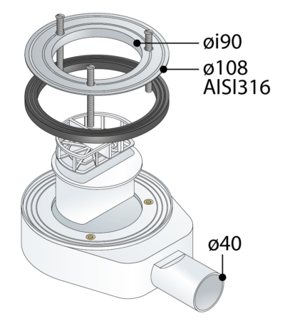 Sifone diam. 90mm con cestello ispezionabile, foro di scarico Ø40mm